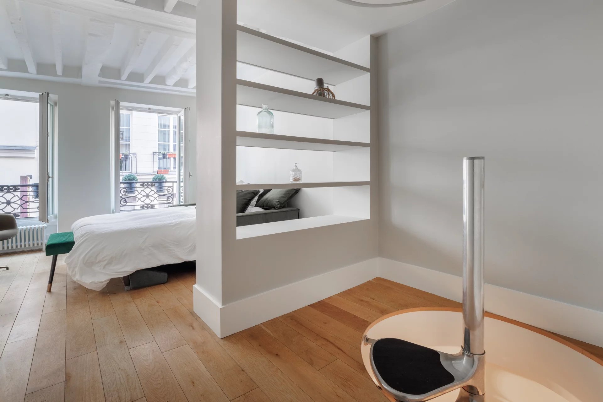Ideally located in the heart of Paris, the street is quiet and surrounded by numerous shops.